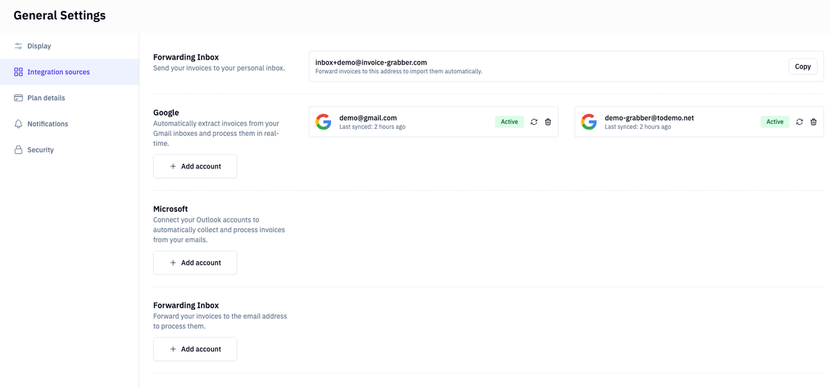 Clicking on Google or microsoft will open an oAuth consent screen. Click through the various steps. It will ask your approval for access to the mailbox and drive. We do need these access roles in order to properly scan you inbox for invoice documents. If the roles are not approved, the scan will fail.