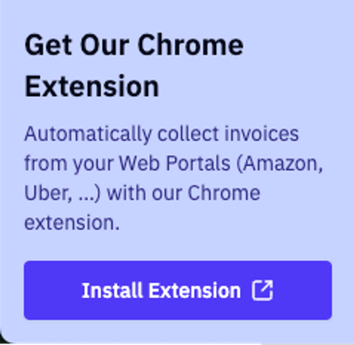Clicking the button will open the invoice grabber platform for authentication in case you are not authenticated. Once you are signed in there, the extension is authenticated as well.